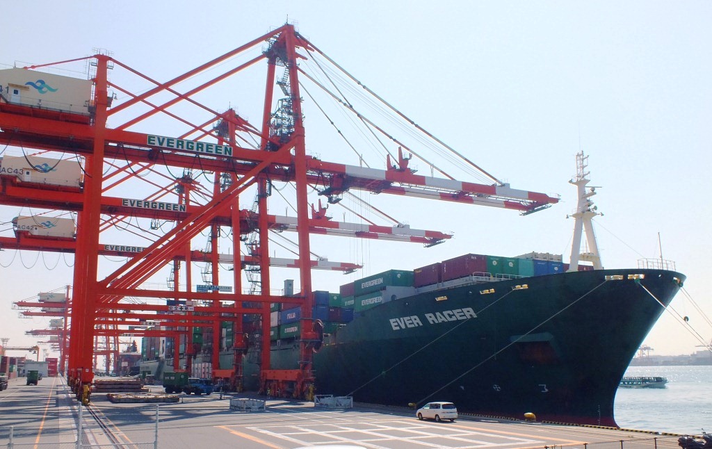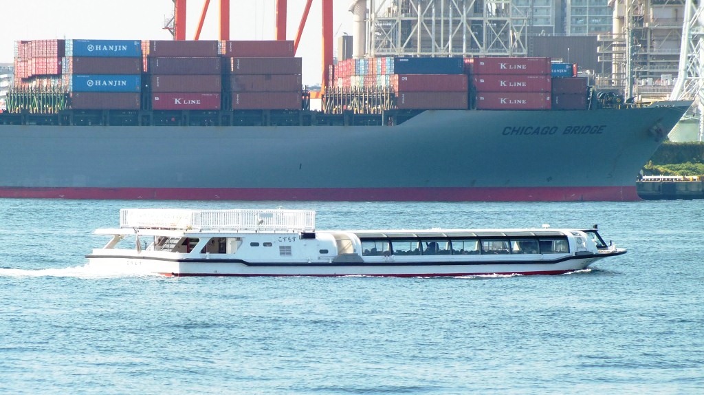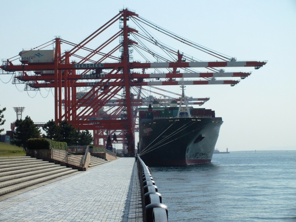 台湾の海運会社、エバーグリーンのコンテナ船はまじかで見るとその大きさに圧倒される。岸壁でコンテナの受け渡しをするトレーラーが小さく見える。大きなクレーンが長さ10mを超えるコンテナを、実に精細に、しかもスピーディに荷捌きするさまは職人芸の圧巻だ。巨大さと繊細さの同居する姿に、改めてわが国の貿易の大きさと、港の重要さを感じる。