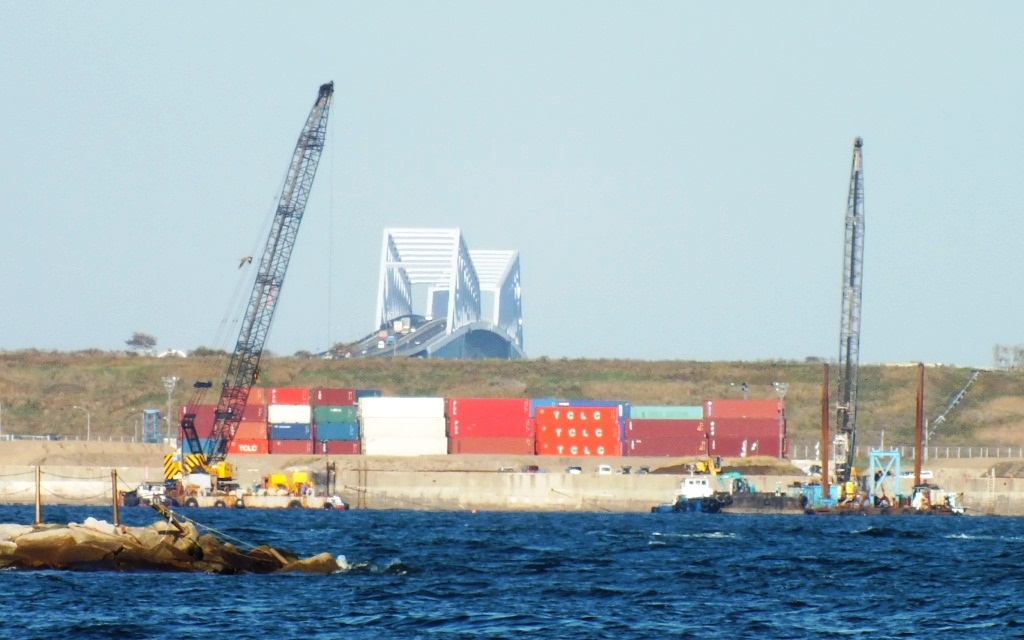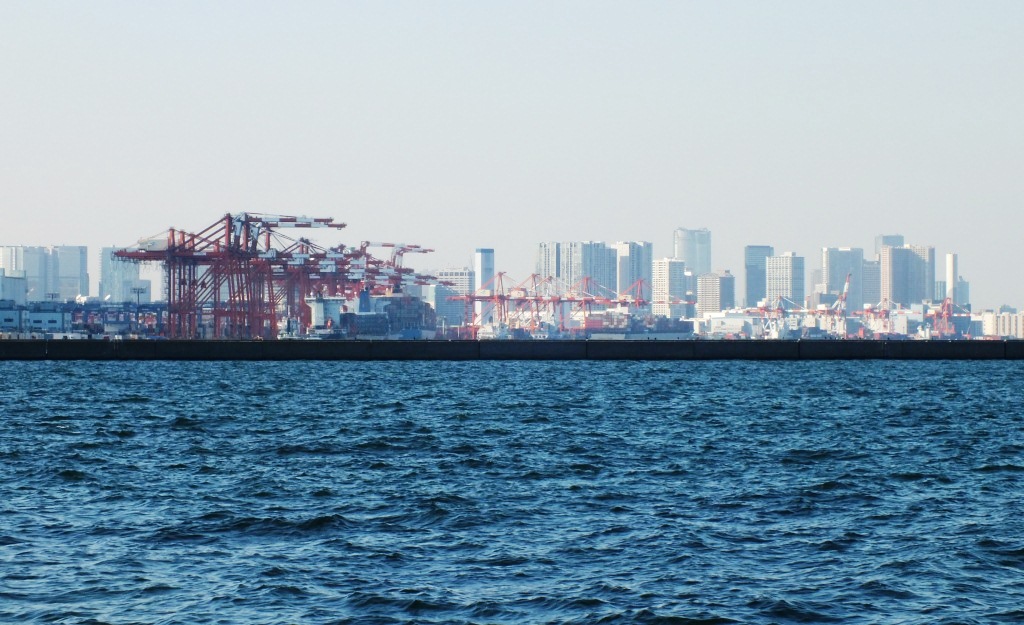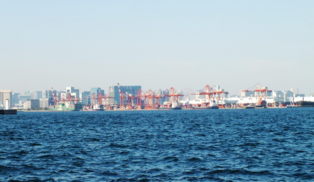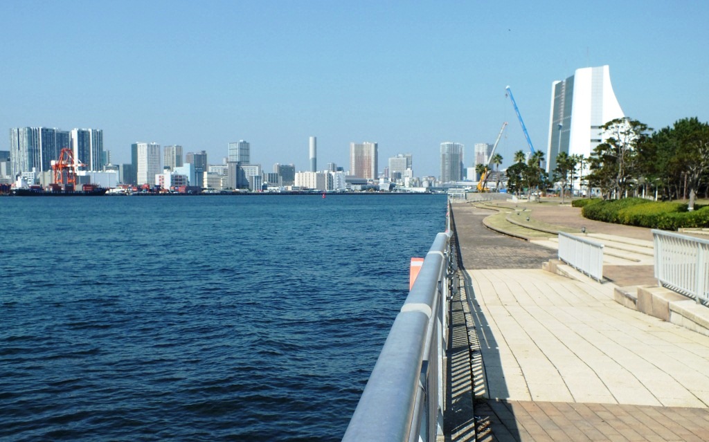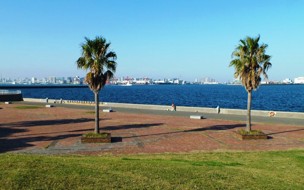 潮風公園では、対岸に大井ふ頭のコンテナバースやクレーンが屹立しているのが見える。大井ふ頭は東京港の中でも、10万トン近いクラスの大型コンテナ船の荷役に対応しているので、運が良ければ、オーバーパナマックスの巨大船を拝めるかもしれない。船好きにはもってこいの公園である。- 旅行時期