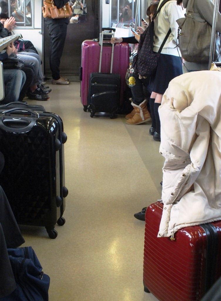 - 朝のラッシュは東京では空いてる方。しかし日中の空港特急は荷物も多く煩雑。