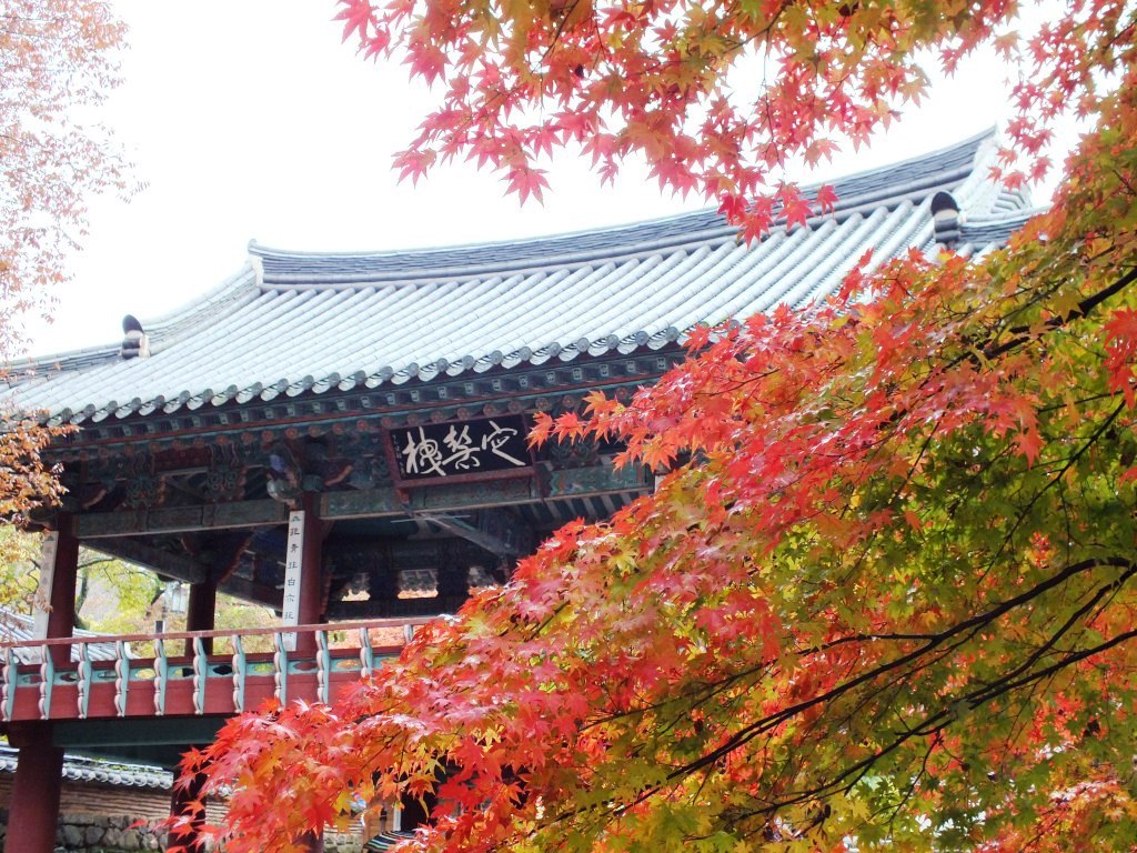 当日は雨が比較的強かったものの、一番紅葉の見ごろを迎えており、週末だったこともあって韓国全土からも観光客が訪れ、かなりにぎわっていた。初夏に訪れた時の静けさが嘘のようである。