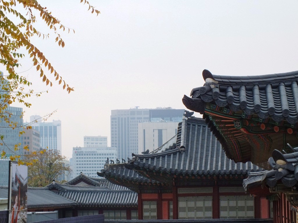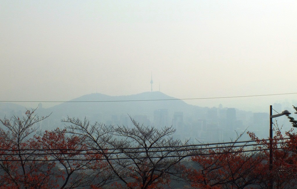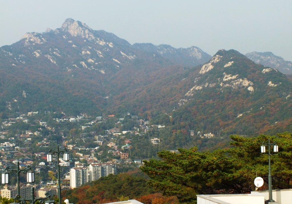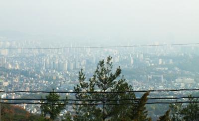 - 目の前に北漢山が見える。ソウルの都市が一望できるが、スモッグでかすんでることも多い。