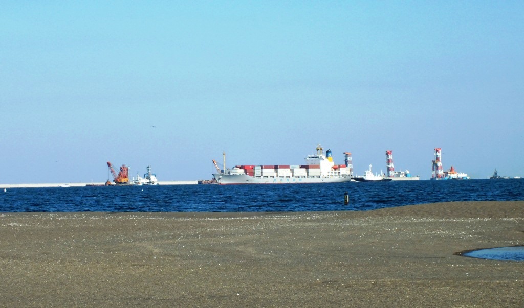 コンテナ埠頭(青海コンテナ埠頭)は、外貿船舶が接岸するので、空港に例えれば、イミグレの向こう側、つまり通関や検疫をしていないし関税などもかかっていない所(保税地域)だから、自由に入ることは出来ないし、コンテナの積み下ろし風景をまじかに見れる所も少ない。