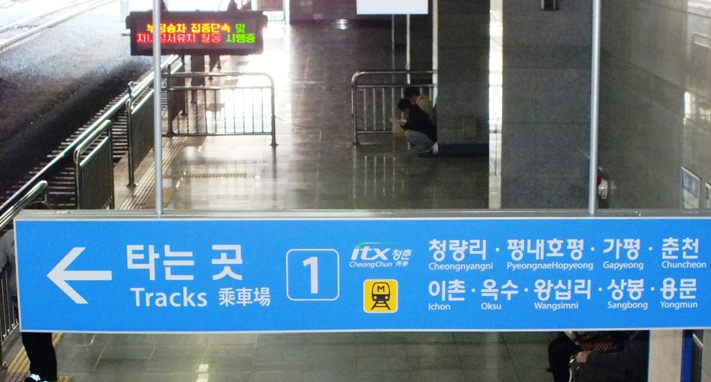 3面4線のレイアウトで、2番、3番ホーム(3,4番線)はフルスクリーン式のホームドアがあるが、急行用ホームにはホームドアはなく、特に、一番南側の1番線は、KTXやセマウル号が走行する大幹線、京釜線に面しており(柵はある)、ここが列車の写真を撮るのに最適なのである。一番多い構図は、S字カーブを巻いているソウル方向を向いて下り列車を撮影する手法。