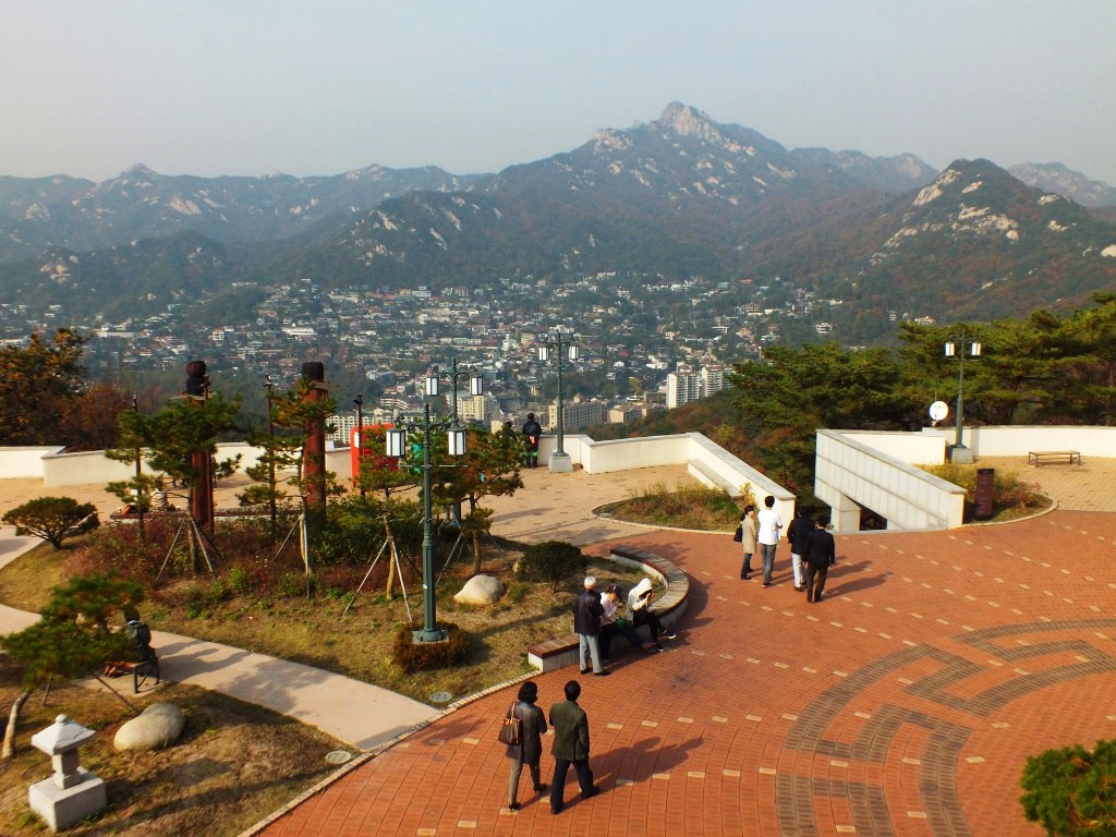 一番標高の高いあたりに、展望台(八角亭)がある。場所的には三清洞のすぐ北あたり。南山のソウルタワーよりはこちらの方が標高が高く、稜線上なので、裏山になる北漢山や道峰山も目の前によく見える。