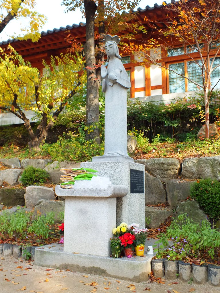 寺のある城北洞というのは、典型的なお屋敷街で、北岳山の東麓にひな壇に邸宅が並んでいる。景福宮の東にある北倉洞とちがい、最近造成されたようで建築中の屋敷も多い。いずれにしろ韓国で戸建ての住宅が並ぶ所というのは極めて珍しい。同じく政界の料亭として有名だった三清閣も近く、同じソウルでも鐘路や江南とは別世界である。