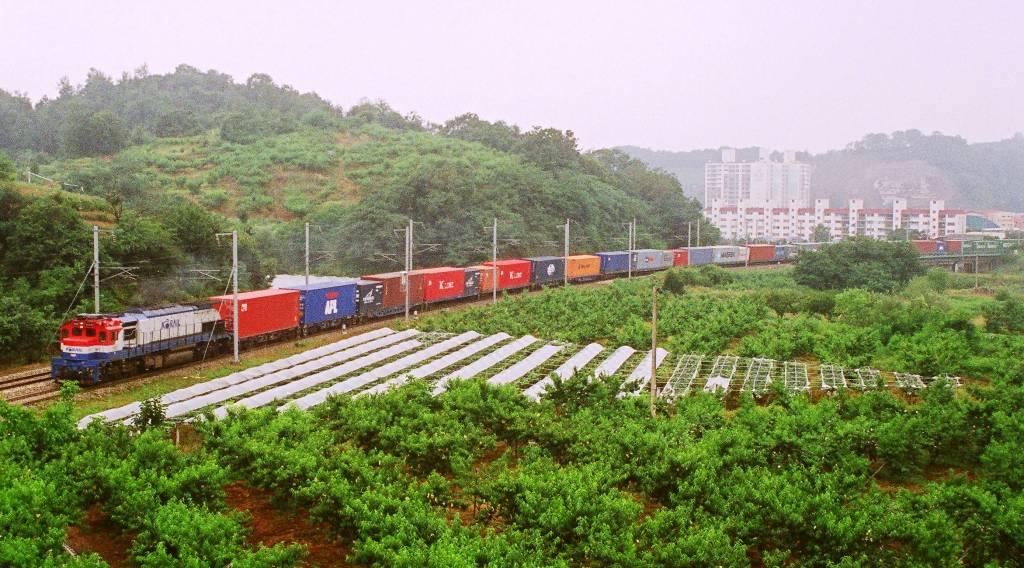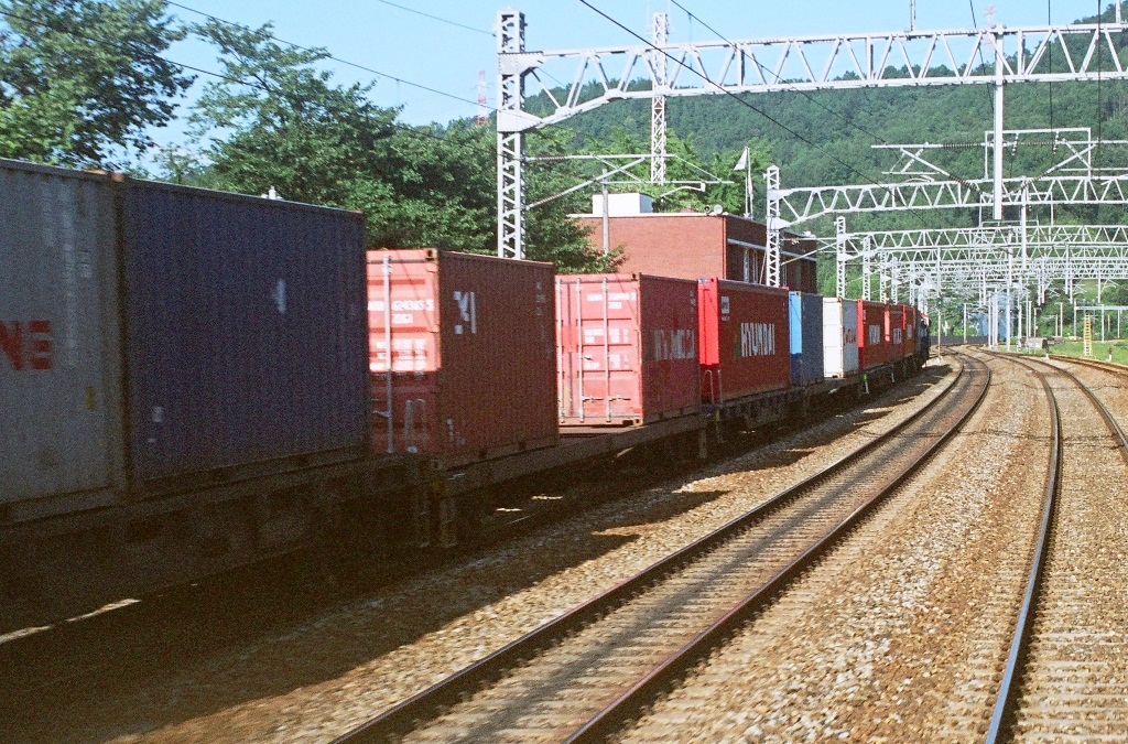 大田を出、南下、永同の里を過ぎるといよいよ峠越えだ。ファンガン、秋風嶺という朝夕しか列車が停まらないわりには立派な駅を通過、駅では大抵20両を超える長大なコンテナ列車が旅客列車が通り過ぎるのを待っている。すぐそばまで、高速道路の大幹線、京釜高速国道が併走しながら、いよいよ峠を越える。景色は大陸の片りんを感じる雄大さがあり、線路はカーブをくりかえしながら高原にも思える小白山地を越え、山梨の勝沼や福島の国見峠に似た、山地の中腹をつたいながら盆地に降りていくルートをたどり、金泉の街につく。