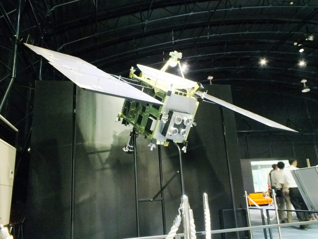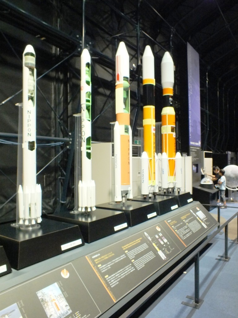 今、衛星軌道上にある「国際宇宙ステーション」の一部モジュール「きぼう」の実物大モデルなどがある。