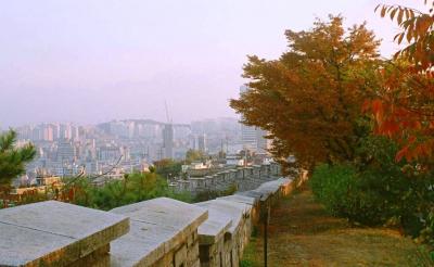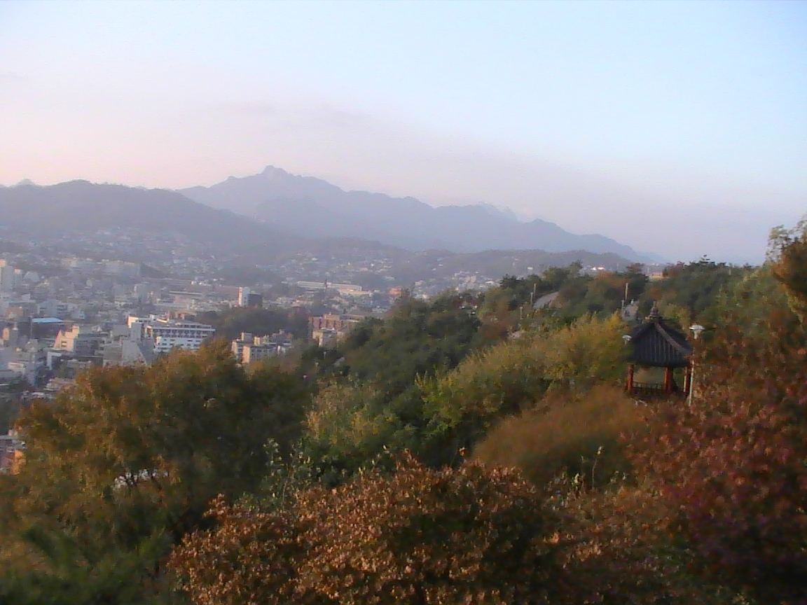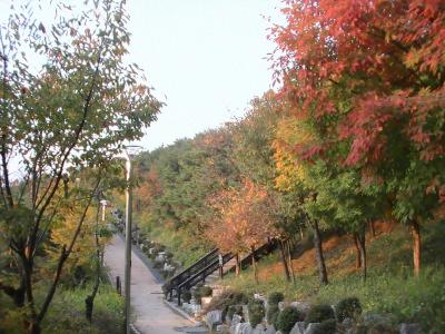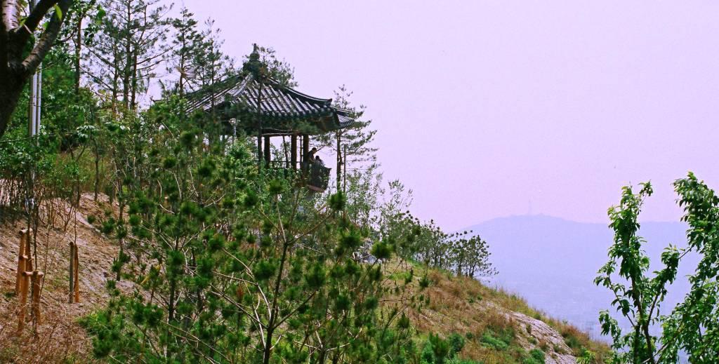 町の表通りに入り口は面してるが、楼閣までは階段を登る。また、周辺はハイキングコースがあり、楼閣から真下の川にも降りることができる。楼閣の東はずれからは、鉄橋を渡るセマウル号やKTXも望めるが、その日は霞んでいた。