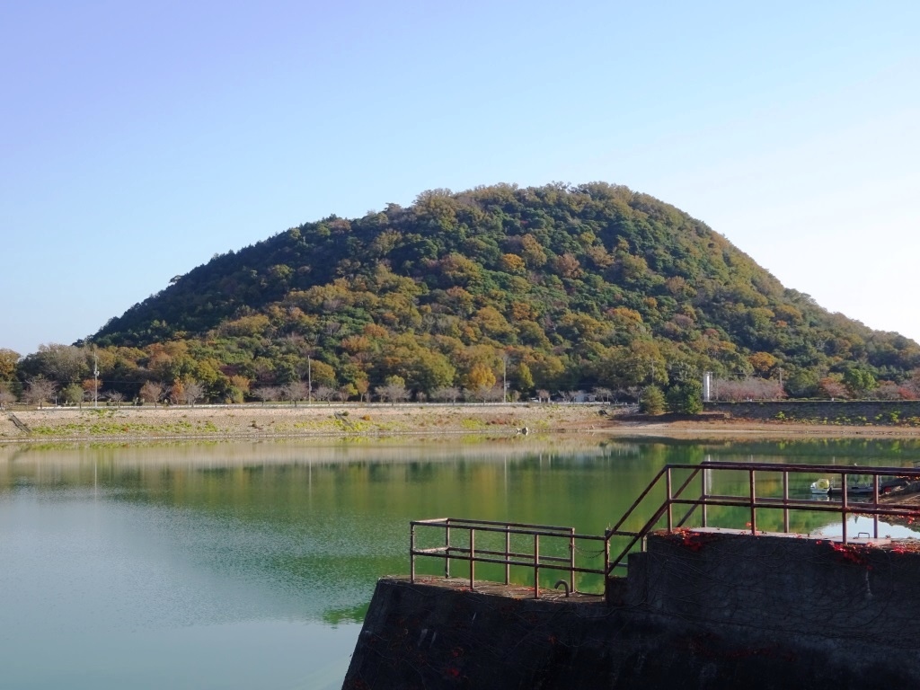 ここも夙川と並んで桜の名所である。貯水池周辺にたくさんの桜並木が植えられている。一方で紅葉の時期も美しい。背景の甲山も錦秋に彩る。