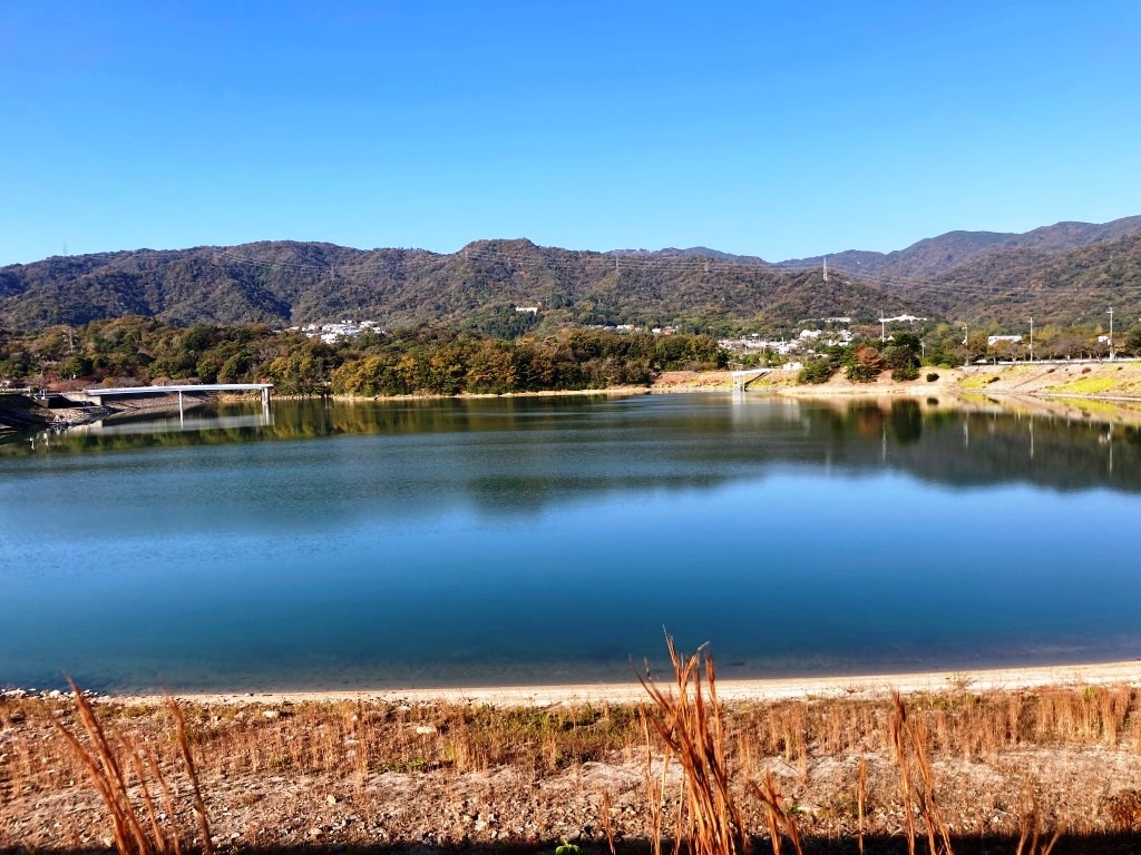昭和43年に建設された、西宮市の水源として機能している貯水池。北のほうを渓谷状に流れる仁川から取水してここに水を溜めている。