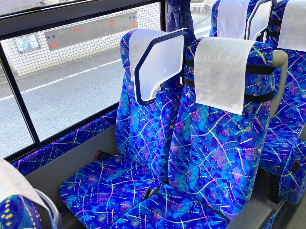 大体1時間毎の運行だが、午前中は15分後に続行便が出る時間帯があるようだ。座席には、コロナ対策のためか透明な板が隣席との間についていた。