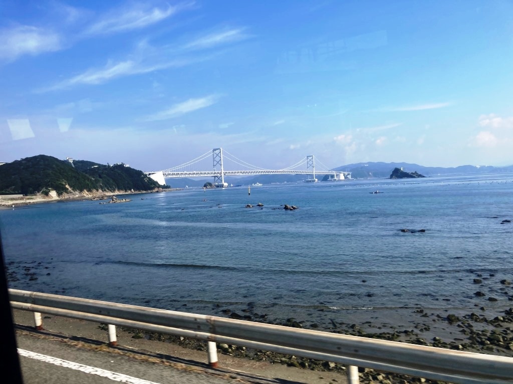 途中、舞子に停まることもあって、結構乗客が降り、半分くらいの乗車率。バスは徳島駅を出て、国道11号吉野川バイパスを北上、鳴門インターから高速に入る。乗車したバスは鳴門北インターでいったん降りて、大塚製薬の美術館に寄った。この付近はきれいな海水浴場が広がる。再び高速に入り直し、淡路島を縦貫し、大橋を渡ったらすぐに舞子のバス停。徳島駅から舞子バス停までは1時間半。速い。