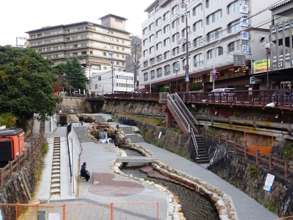 車窓は、神戸電鉄が併走しており、ちょうど谷あいなので周囲の屏風のような山なみが綺麗、特に紅葉していたのが美しかった。利用者は高齢者中心に意外と乗っており、有馬まで乗りとおす人も多かった。多分、高齢者向けフリーパス利用者だろう。