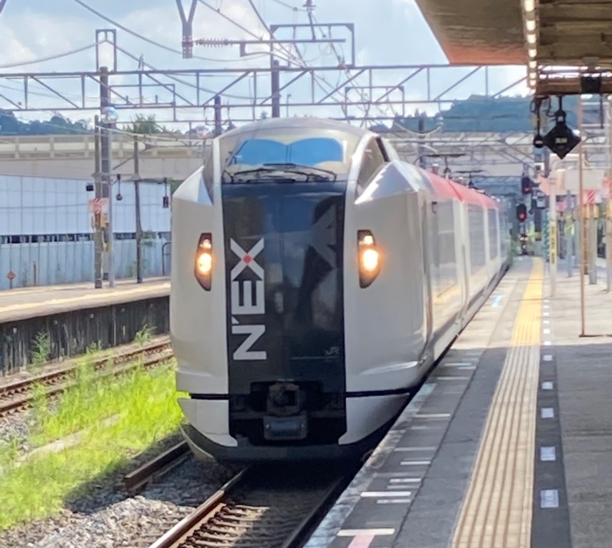 側面から見ても、雨どい部分の帯が太いのと、方向幕がフルカラー、グリーン車の窓がやや違うこと、屋根に元空気溜めの四角い箱があること、そして、冷房作動音が妙に低く、インバータの音も乾いたメカニカルな音んあおで、すぐ見分けられる。
