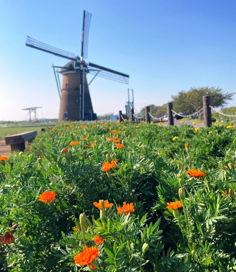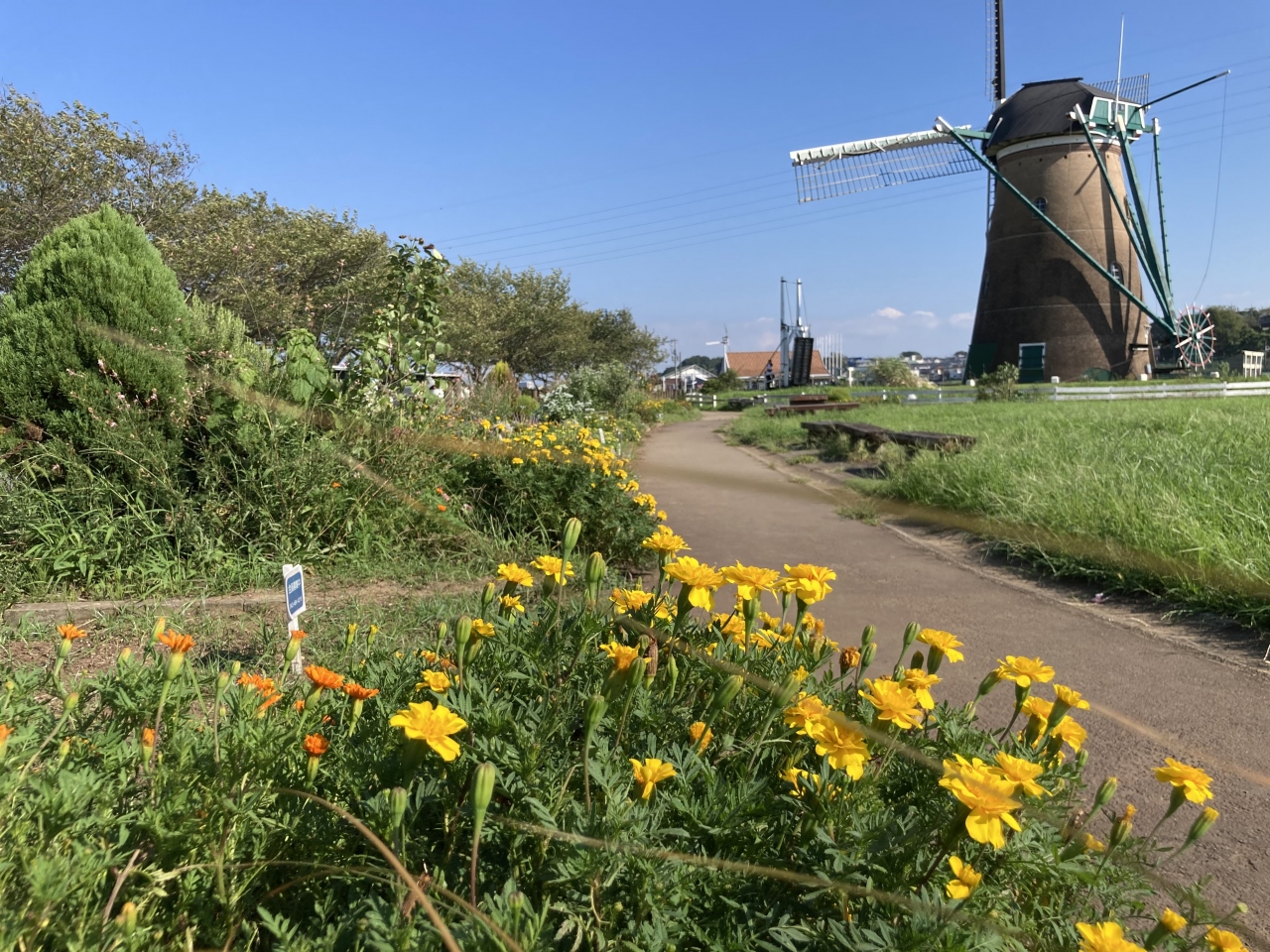 チューリップが有名だが、秋はコスモスが植えられるし、そのほかにも様々な草花が植えられている。