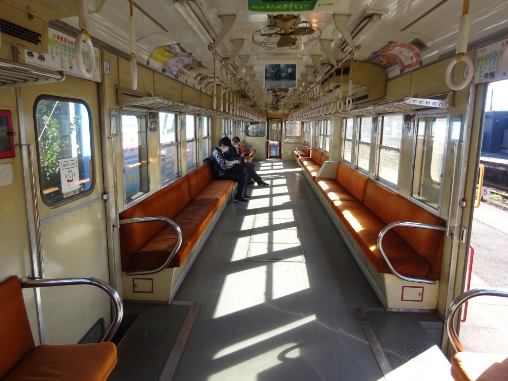 緊急事態宣言中が続き、客足も遠のいており、久々意に休日乗車したが、一番利用客の多い時間帯でも、10人に満たない乗車率であった。