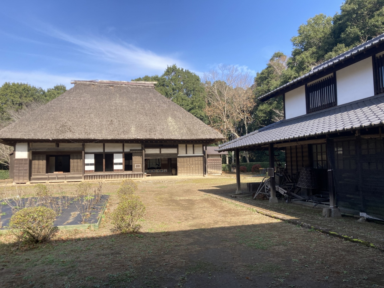 もともと千葉市内にあったものを移築した。かやぶき屋根と立派な長屋門も見どころ。無料で見れる。