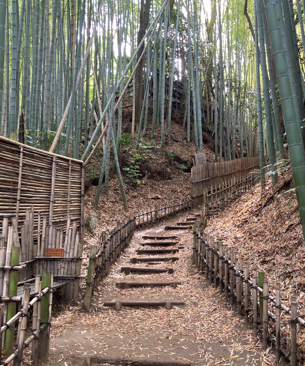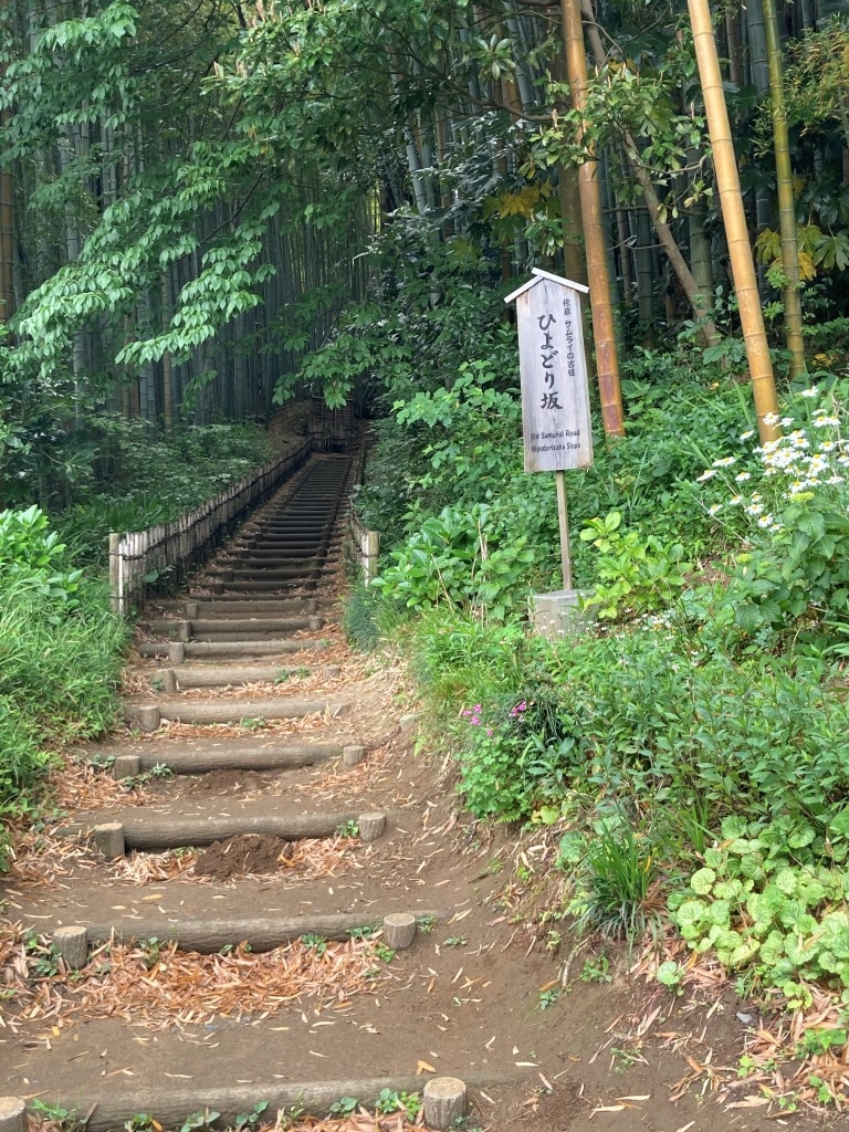 段々なので車や自転車は通れない。江戸時代の情景にかんがみてそのように整備された。坂道の両脇に整えられた生垣が綺麗、一応、休憩場所もある。