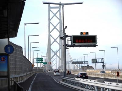 舞子駅の真上には高速バスのバス停、「高速舞子」バス停があり、ここからも巨大な吊り橋支柱がよく見える。鉄道との乗り換えが便利なバス停で、明石海峡大橋を経由する高速バスの大半がこのバス停に停車する。三宮、大阪から電車でここまで来て、ここから淡路島内、高松、徳島、松山、高知へ行くことが出来る。バスの本数は膨大で、四国へ行くメインルートを思わせる。- 旅行時期