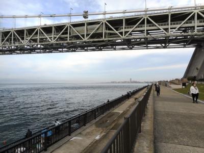 本州側(舞子側)は、その橋の麓に舞子公園と言う海浜公園が広がり、そこから橋を眺めることが出来る。