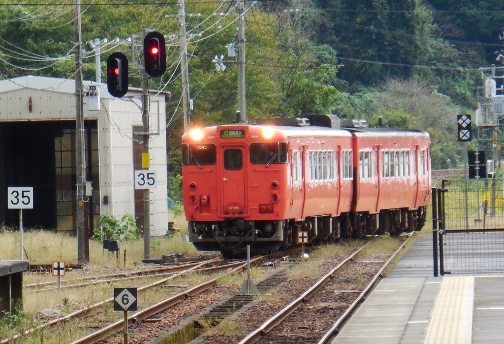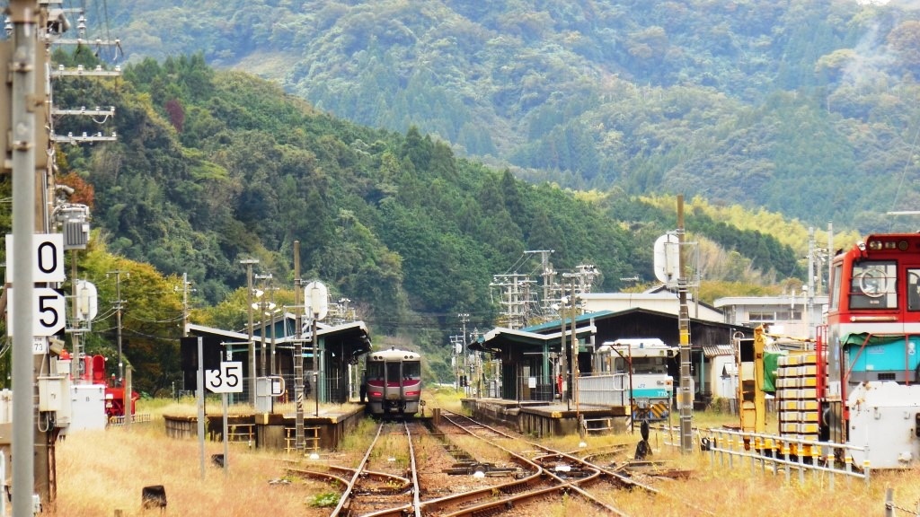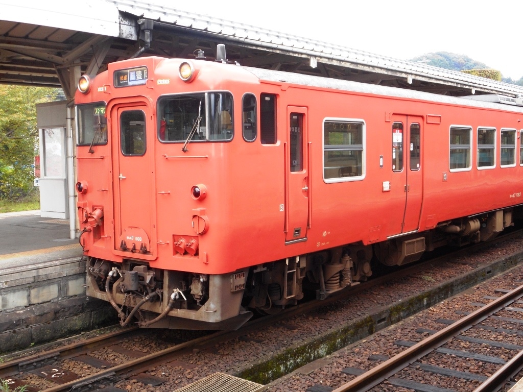 今は古豪キハ47系や新鋭キハ126系が、1時間から1時間半毎にのどかに走る。沿線も駅も実にのどか。木造か木造でなくとも待合所つき古い構造の駅が多い。