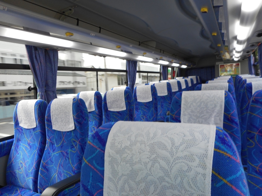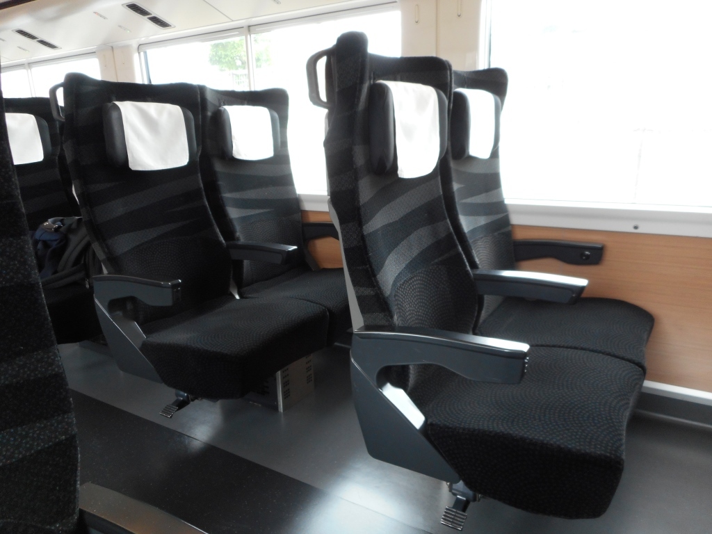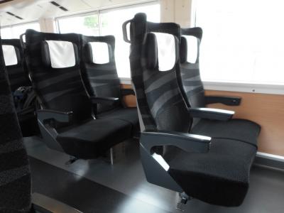車両は新型車で統一され、座席は枕が独立し、椅子そのものも大きめ、肘掛けにモバコンが完備されている。