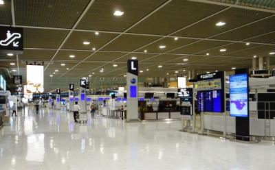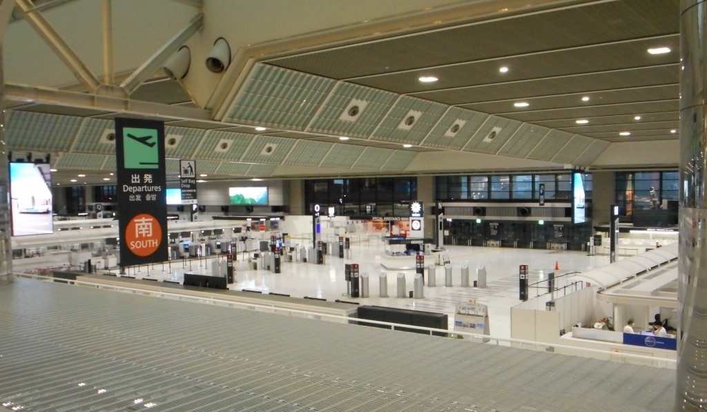 ゴーストタウンのようにひっそりとしたターミナル内に、ようこそジャパンの大画面PVが、空しく流れる。- 旅行時期