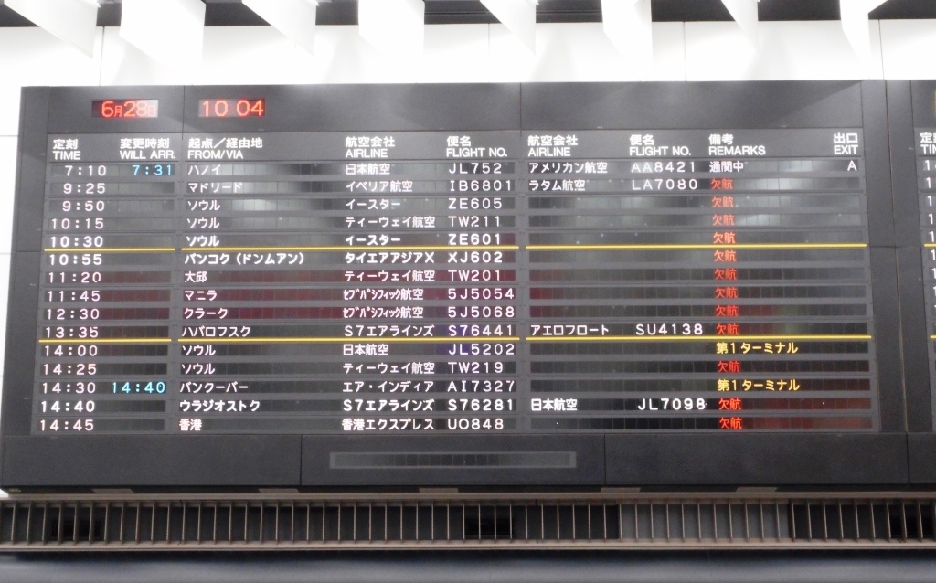 国内線も、2タミを使う日航の便は、全て欠航中。(6月28日現在)