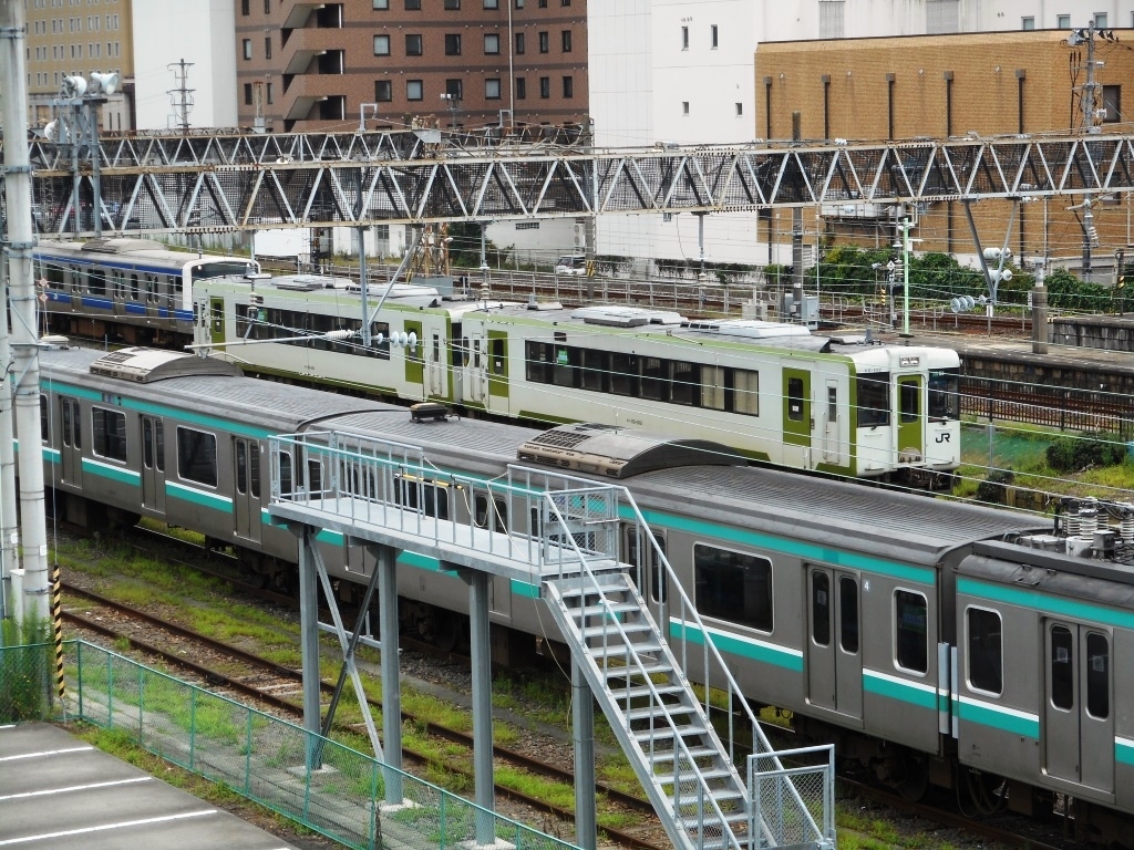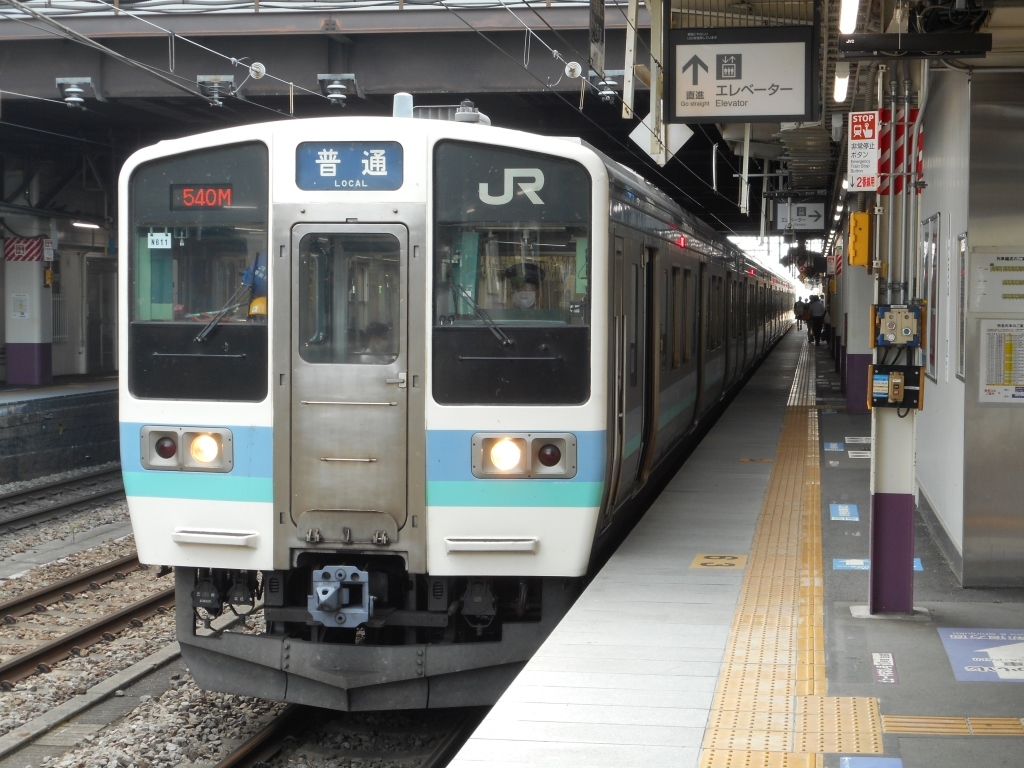 車両はすべて211系。3両編成と6両編成があり、上越線の211系と違い、こちらは少数派のクロスシート車も存在する。