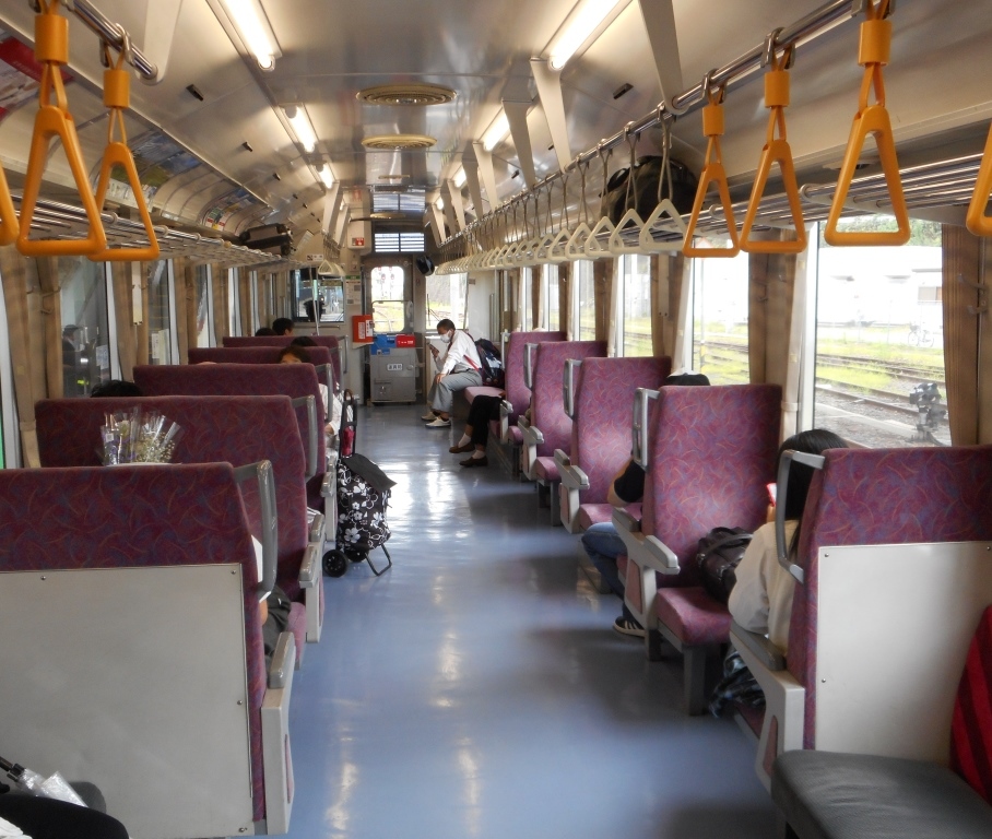 電車は一応ボックスシートが必ず数両繋いであり、大体6両から8両編成だが、沿線に高校が多く、登下校時間が重なると意外に混雑する。特に今はコロナの関係で午前と午後で分散登下校してるのでなおさら。