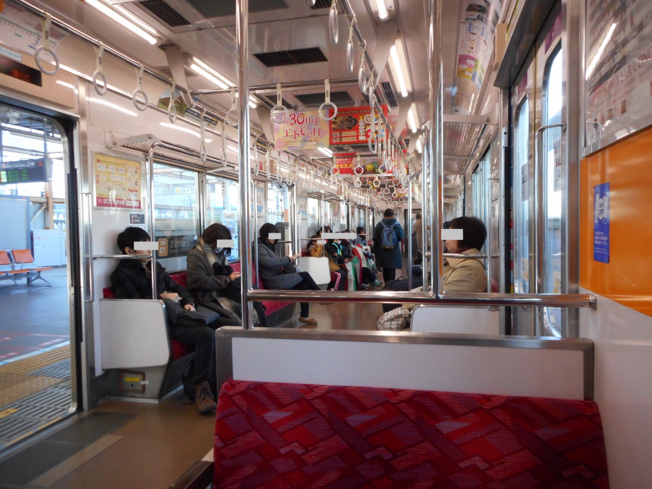 高尾が観光地として急に人気が出てきたうえ、もとから沿線に学校が多いので、休日でも混雑する。
