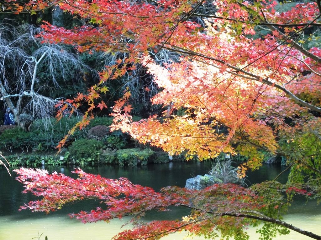 北総有数の紅葉スポットで、いくつもある池のほとりに、モミジの巨木が何本もあるのだが、今年は10月にあいついだ台風のおかげで、見栄えは悪く今いちだった。