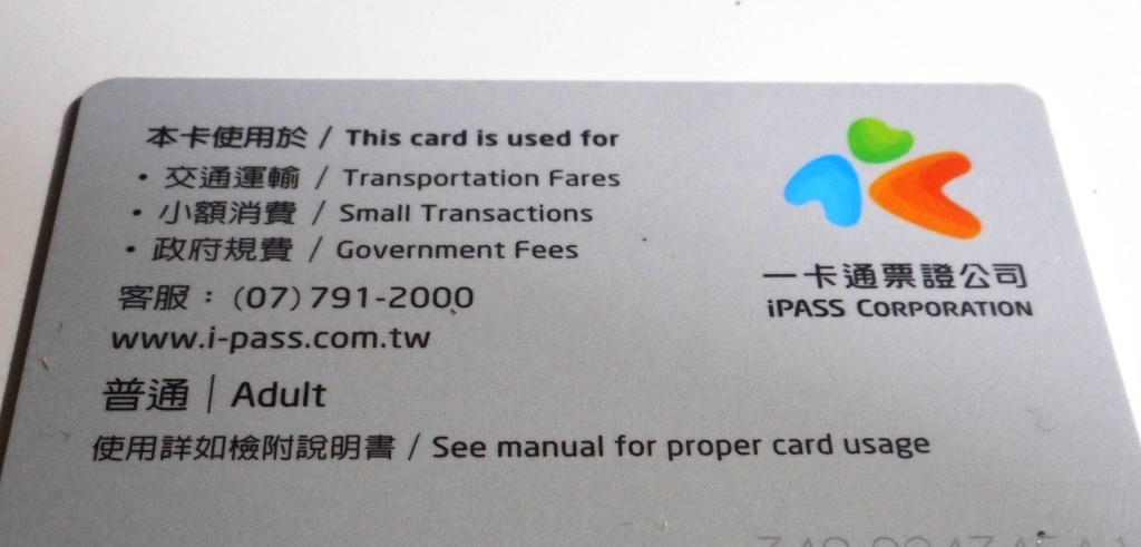 鉄道の場合、MRTは全線、台鉄は、乗車区間70km以下のタロコ・プユマ号意外の列車に立ち席で乗車が可能。自強号も、区間車の一割引きの運賃で乗れる。使い方はJRのスイカと全く同じ。