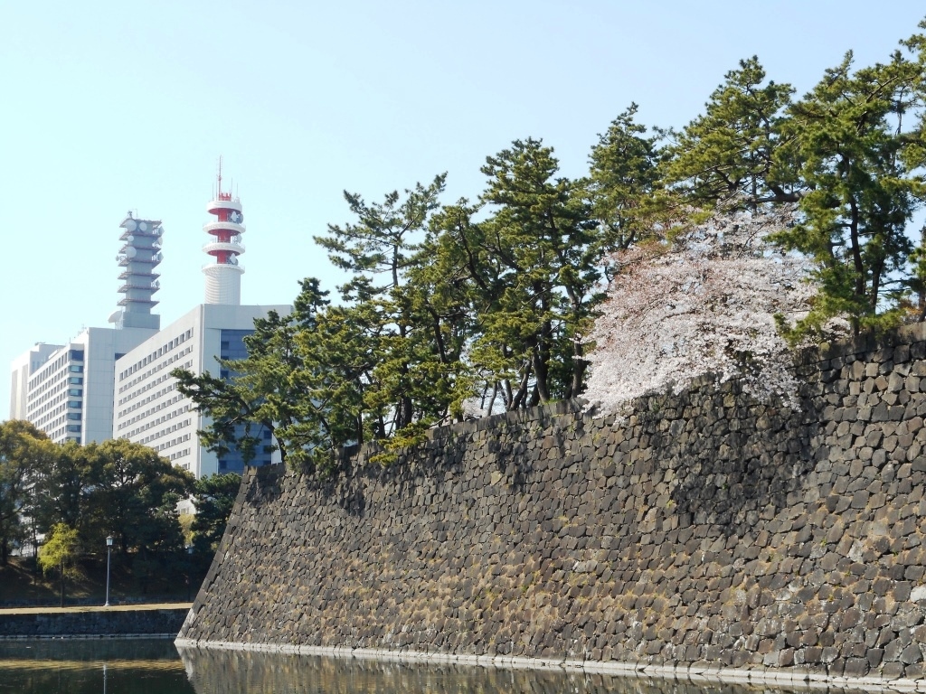 付近には桜の木が数点あり、満開だった。皇居内にある伏見櫓もよく見える。