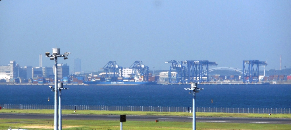 C滑走路とその沖の第一航路はあいかわらずよく見える。沖合に、新しく、中央防波堤外側コンテナふ頭が出来上がっていたのが見えた。