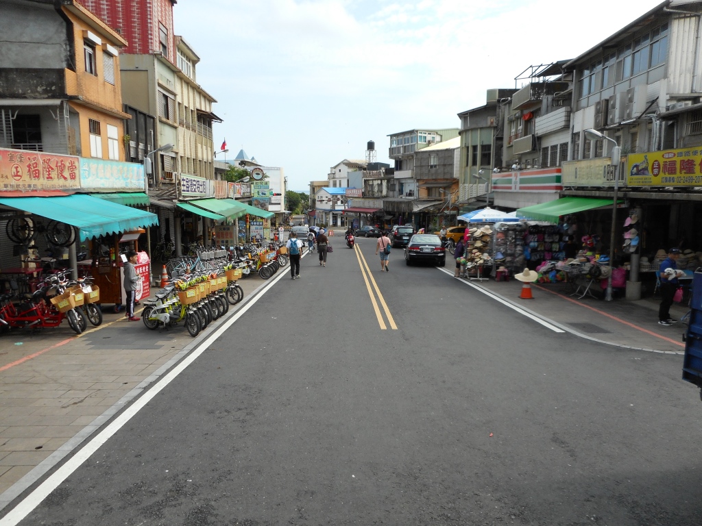 新北市の東端に位置するこの駅は、青い太平洋が至近で海水浴場の玄関駅で、真っ青な明るい日差しのもと、駅前には商店、食堂が並び、レンタサイクル、タクシー営業所もある。