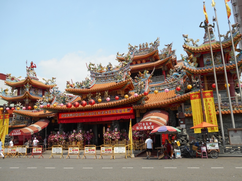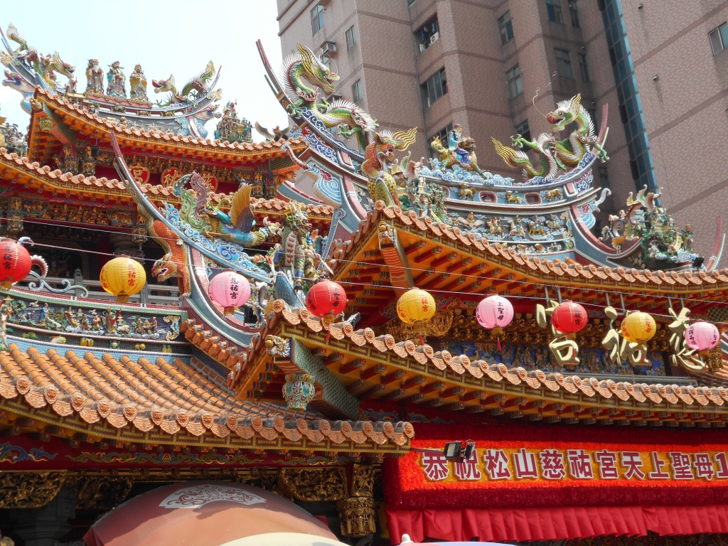 台湾でもポピュラーな道教の媽祖様を祭ったお寺で、しかも行ったときはちょうど、天后生誕祭の数日後だったこともあって、お寺の周辺一面に提灯をはじめとした飾り付けがきらびやかに残されていた。