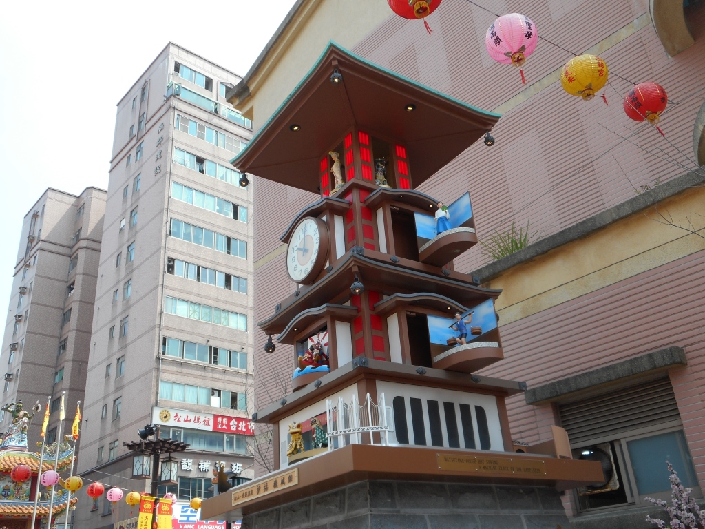 お寺の真ん前、MRTの駅出口のそばに、からくり時計がいつの間にか出来ていた。成田の駅前にあるものとよく似ている。