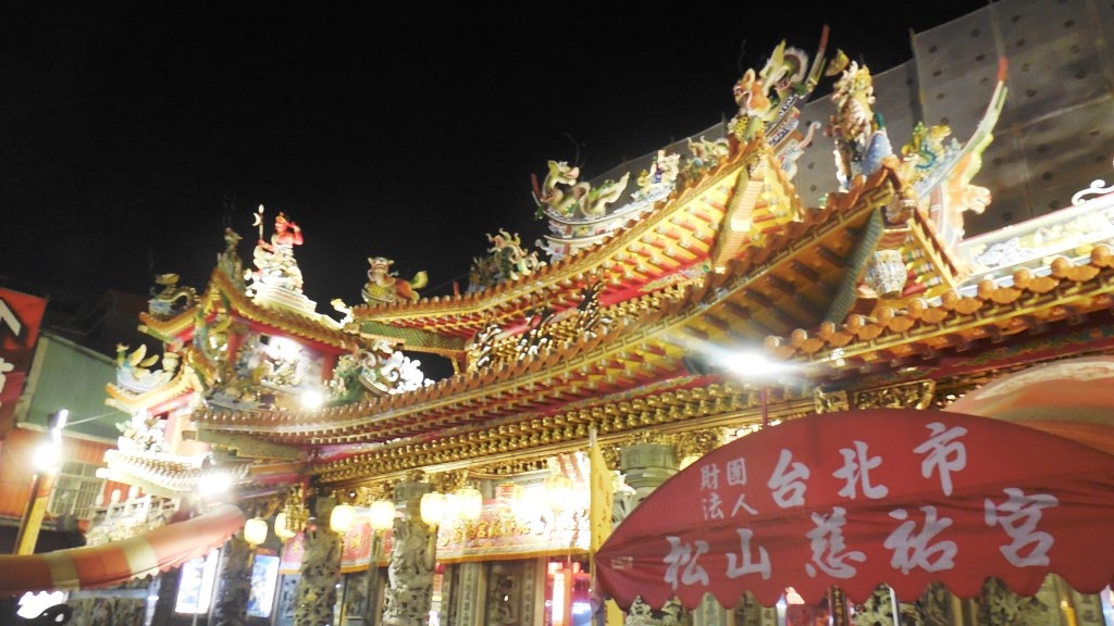 MRT緑線の終点であり、台鐡の乗換駅である松山駅。地下化した駅の真上と言ってもいい位置に、このお寺があります。