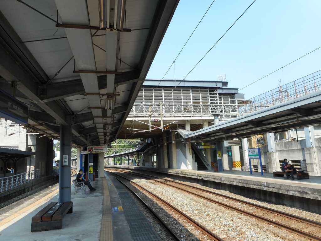 この駅は区間車しか停車しないが、大体20分ごとに列車が来るのでそんなに不便ではない。駅のすぐそばまで山が迫り、南側は大漢渓という川が近い。