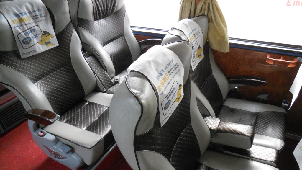 車内は韓国のように統一されておらず、バス会社によって結構違いがあるようだ。ただ、新竹までのように片道2時間かからない区間は、3列座席の「皇后座」でどこも統一されており、台湾名物「総統座」(2列座席)の豪華車は、台中や高雄まで行くバスじゃないと運行されていない。24時間運航が台湾高速バスの特徴だが、新竹までの距離だと、24時間運転はしていなかった。