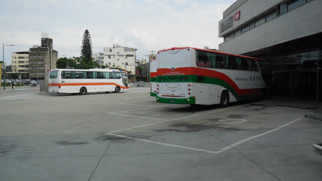 新竹は昔はバス会社ごとに乗り場がまちまちだったのが、駅裏側に「新竹轉運站」というバスターミナルが新しく出来、そこに集約されていた。が、乗り場のブースは、バス会社によって分かれている。これは台北の轉運站(バスターミナルのこと)も同じ。切符売り場も会社によって窓口が違う。このあたりは韓国の高速バスと大きな違いだ。