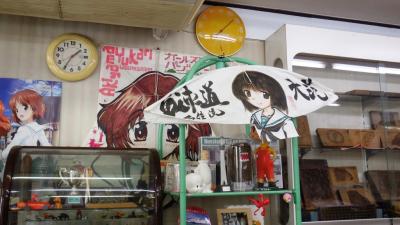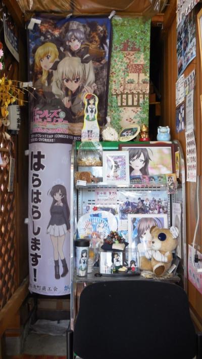 このお店は、ガールズ&パンツァーの主要人物、アンコウチームの五十鈴華が看板娘とあって、華ちゃん関連のグッズやファンアートなどが店内にたくさん飾られているので一見の価値大。むしろ、昨年より、増えていたような気がする。