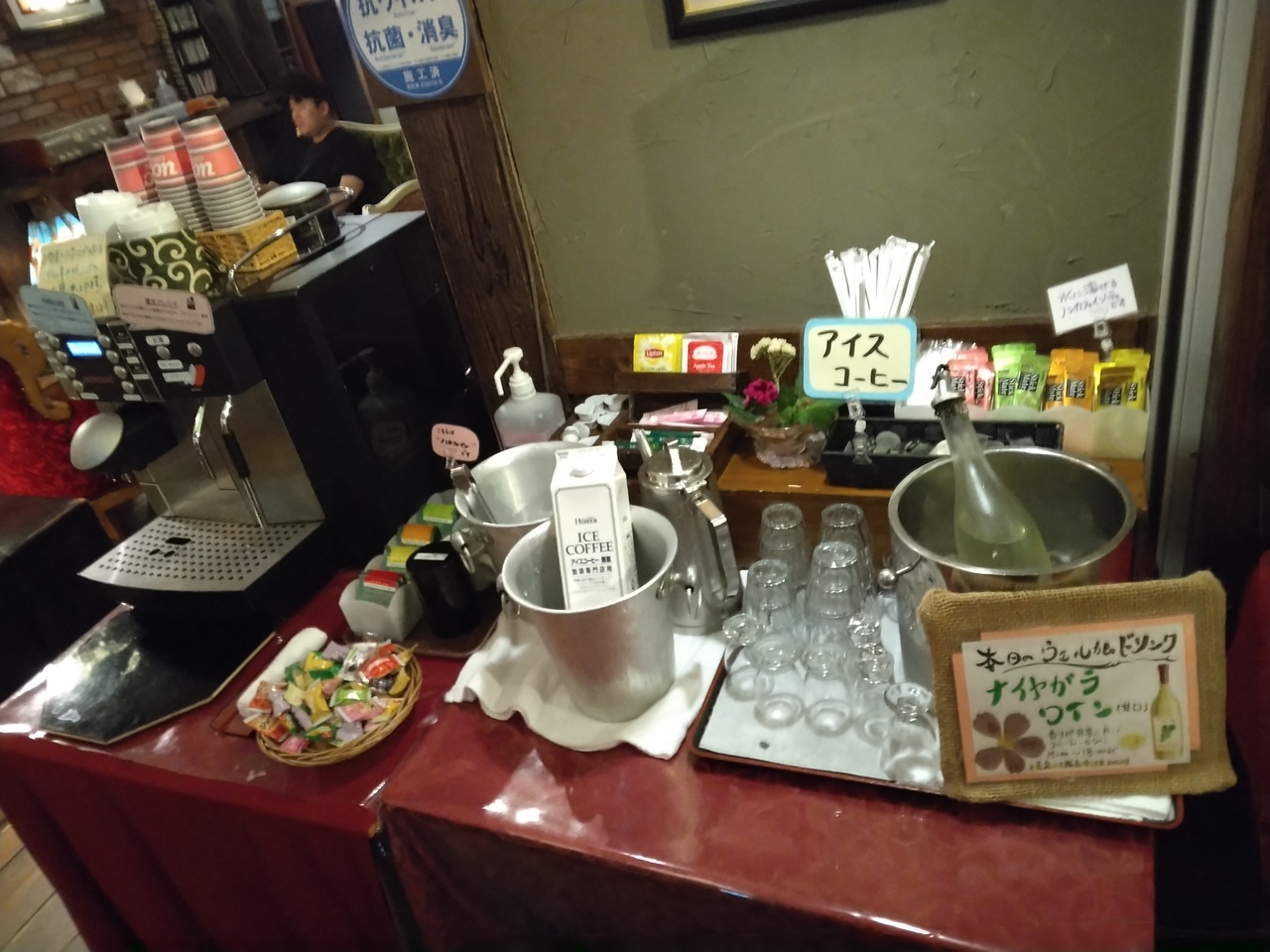 夕食は一番早い時間帯にしたら、サービスでドリンクが一杯無料でした。