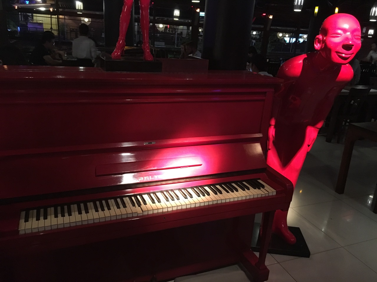 2階には、かのレッドピアノが鎮座してた。色は、レッドというかピンクというか。