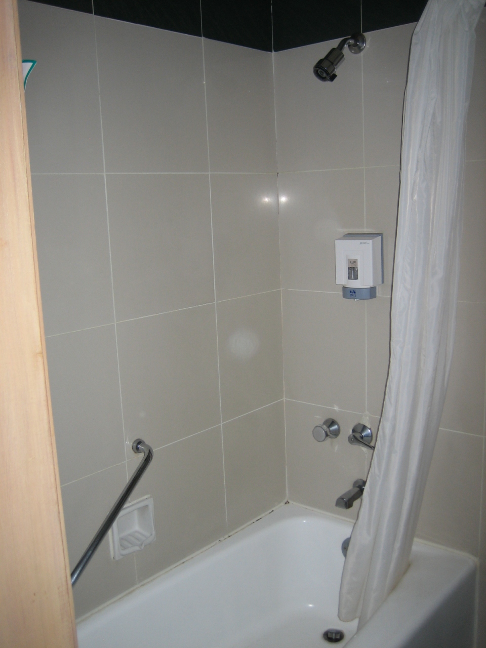 少し狭かったです。バスルームも、それほど不満はなく、一般的な中級クラスのホテルだと思います。セイフティボックスは設置されていませんでしたので、貴重品をホテルに置いておく場合、すこし不安でした。(何もなかったですけど。)少し駅から遠いという印象です。(遠いといっても10分くらいでしょうか、裏はナッツフォードテラスなので、そこが目的のひとつなら便利。)