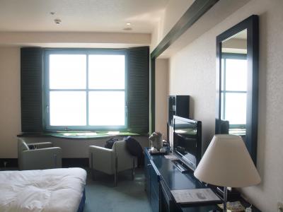 海側の部屋に泊まりましたが、掃き出しの大きな窓が2ヶ所付いていてその外はベランダになっています。