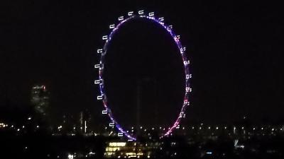 巨大な観覧車は日が沈んで暗く・涼しくなってからがお薦め!夜のライトアップは外から中から、マリーナ・ベイ・サンズの展望から、ガーデンズ・バイ・ザ・ベイから昼夜見ても、カラフルなイルミネーションはとても綺麗に見える!