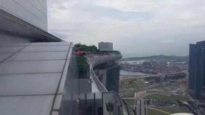 スコールの予報が出るとレインコートを持っていれば入場可、傘は入場不可との事で、天候は重要、スカイパークはS$20(約¥1,560/1名)宿泊客しか利用出来ないプールも見える、パーク内にはレストランもあり食事も可能。360°近くの眺めは最高!
