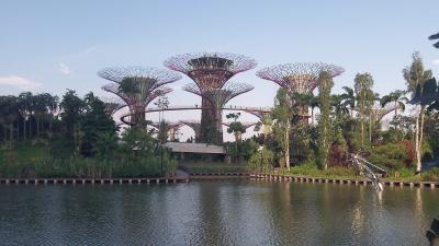 スーパーツリーと呼ばれる巨大な人工ツリーが林立。夜のイルミネーションショー(音&ライトアップ)を見るために・・・。MRTベイフロント駅B出口から徒歩で19:30からのイルミネーションショー(10分間)は色鮮やかなライトアップが印象的で綺麗で観光客の多くがデジカメやビデオカメラでの撮影をしていた。